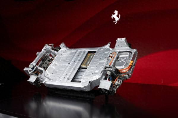 法拉利纯电动车的电池系统 100% 自主设计组装,与车身底部完全集成,相比同级内燃机车型降低重心 80 毫米,核心亮点如下: